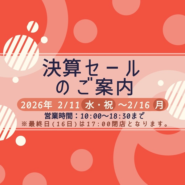 この度、2026年2月11日(水・祝)~16日(月)の6日間、「決算売りつくしセール」が開催されます🎀