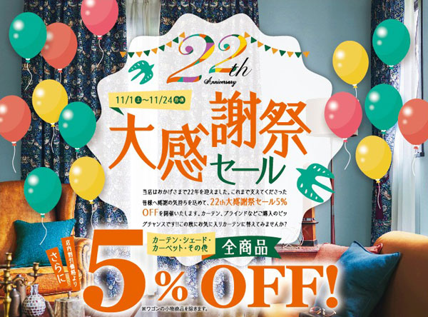おかげさまでカーテンファクトリーは23周年を迎えました!