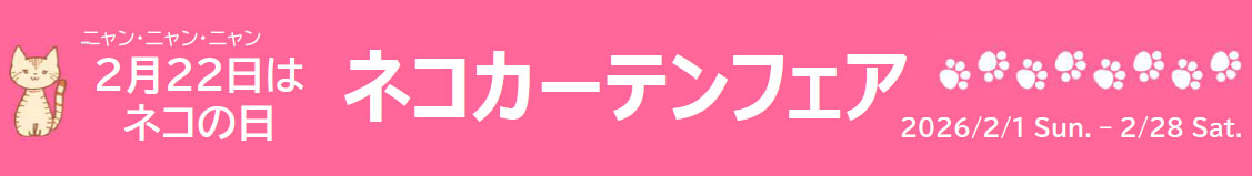 1.ネコ柄カーテン 自店平常価格より5%OFF!