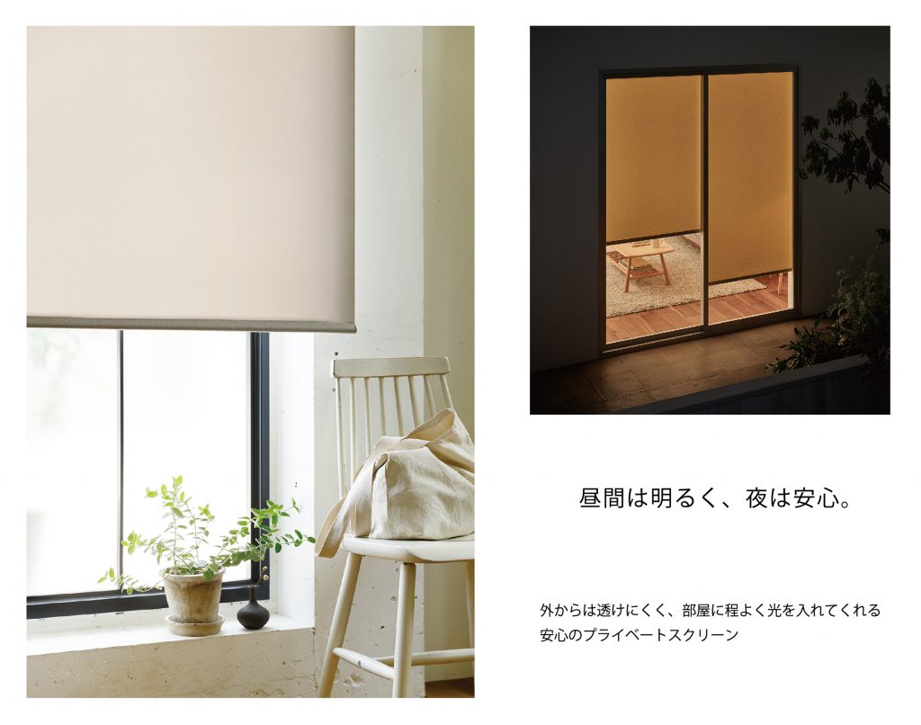 トーソーの「マイテックシリーズ プライベートスクリーン」は、糸の太さや種類、組織(織り方)を工夫することで、昼間は室内に光を取入れ、夜は室外から室内を見たときの視線を遮ることが出来るロールスクリーンです。「遮像性」と「採光性」の両方を兼ねそろえている点が評価されました。
